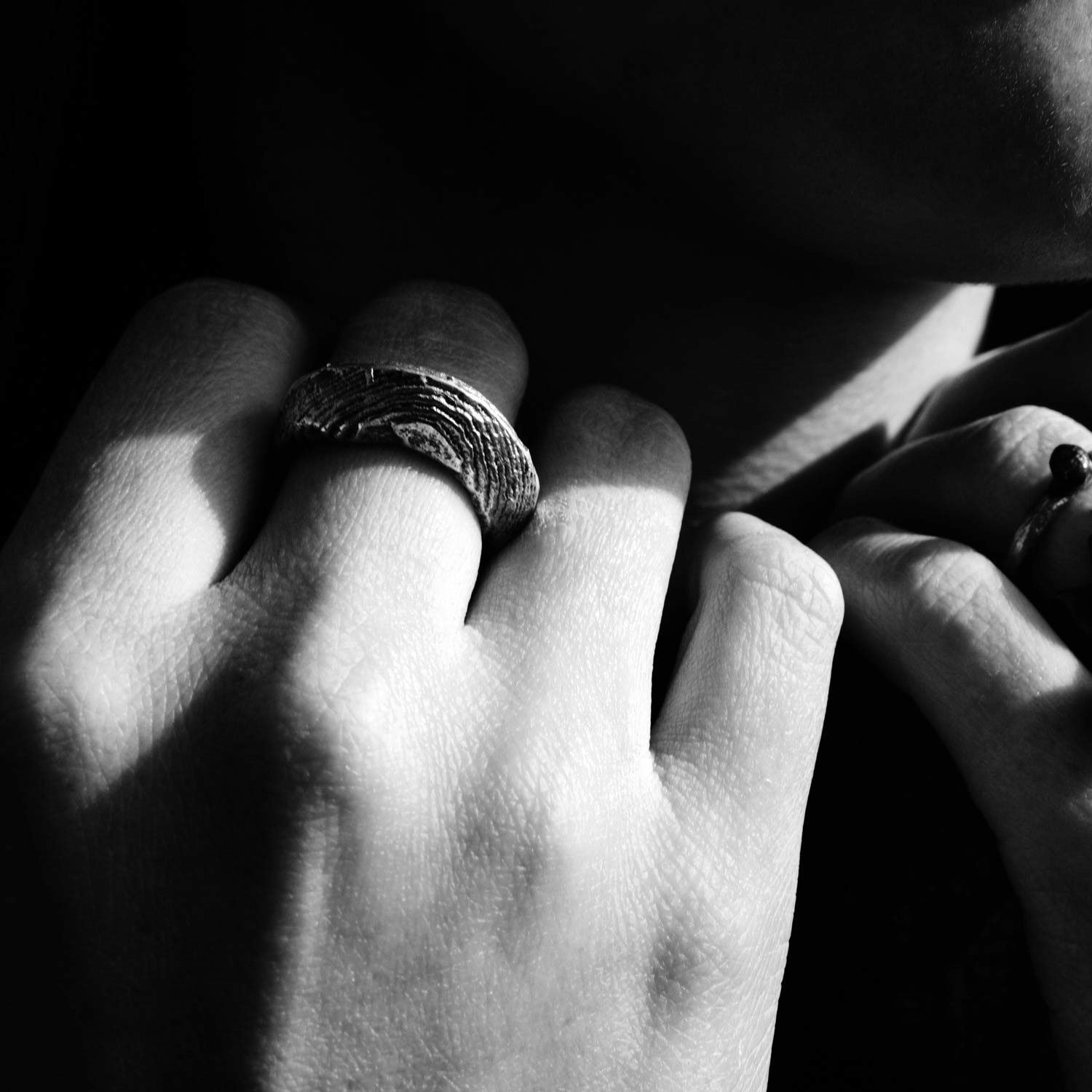 Anello in argento caratterizzata dalla texture tipica della fusione in osso di seppia.