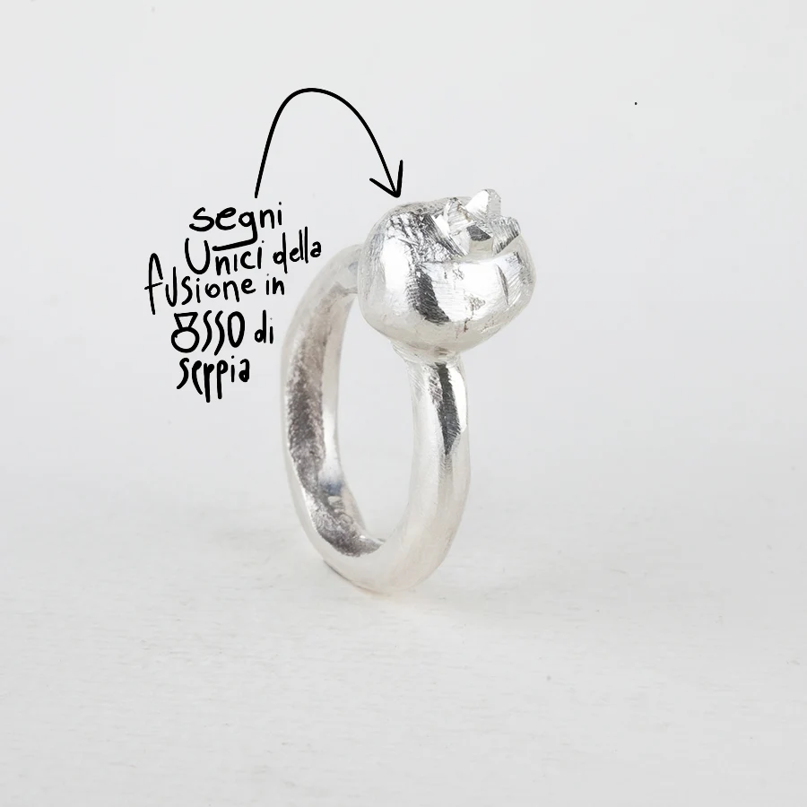 Ogni anello è fatto a mano e da considerare unico, in quanto la tecnica utilizzata non consente di ottenere due o più gioielli perfettamente identici tra loro, pertanto ogni lieve differenza deve essere considerata come caratteristica di unicità del prodotto.