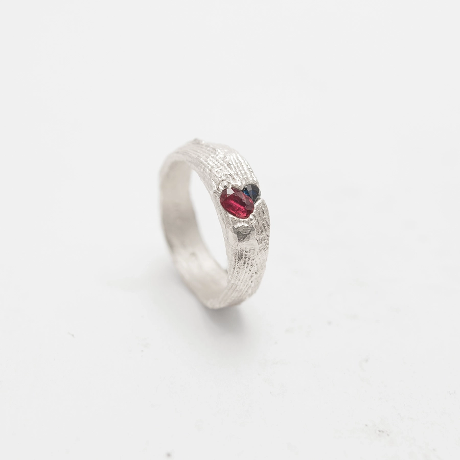 Anello unico nel suo genere in argento 925 e zaffiro rosa e blu.